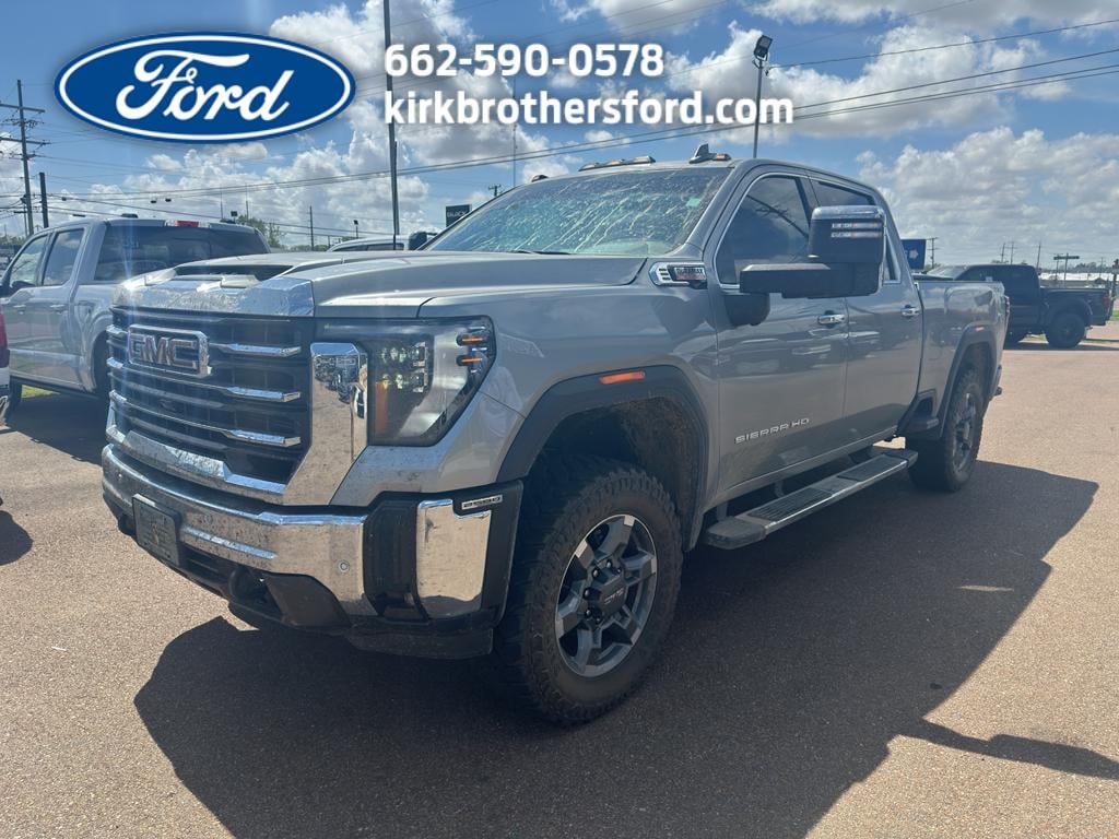 For sale in Greenwood, MS - a low-mileage 2025 GMC Sierra 2500 SLT with only 26,305 miles. This rugged 4WD heavy-duty pickup pairs a powerful V8 6.6L Diesel engine with modern comfort and advanced safety features, delivering exceptional capability for towing, hauling, and daily driving. This GMC Sierra 2500 SLT is loaded: Lane Departure Warning, Adaptive Cruise Control, Navigation, Heated Steering Wheel, and an AutoCheck Clean Report - giving you confidence in the truck's history and performance. The diesel V8 provides strong torque for worksite demands while maintaining long-haul efficiency, and the 4WD system ensures traction in tough conditions. Priced to move, this GMC Sierra offers the best price in the area for comparable models, making it a smart value for buyers seeking premium capability without premium cost. Its low mileage means years of reliable service remain, and the SLT trim adds upscale interior amenities and convenience features for comfortable driving every day. Located in Greenwood, MS, this GMC Sierra 2500 is ready for immediate test drives and inspection. Contact us to schedule a visit, review the AutoCheck report, and see why this 2025 GMC Sierra 2500 SLT is the top choice for buyers who want power, technology, and value in one package.