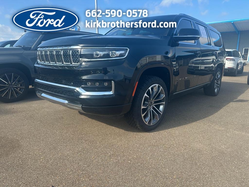 Experience luxury and capability with this 2023 Jeep Grand Wagoneer L Series III, a premium 4WD SUV powered by a smooth and efficient 3.0L 6-cylinder gasoline engine. Located in Greenwood, MS, this Jeep Grand Wagoneer L blends commanding presence with refined comfort, and it's offered at the best price in the area â" exceptional value for a vehicle of this caliber. Inside, enjoy sumptuous leather seats and a heated steering wheel that elevate every drive, whether commuting or heading out on an adventure. Modern convenience is built in with remote start for quick climate control, Android Auto for seamless smartphone integration, and hands-free Bluetooth to keep calls and music connected safely while you drive. Spacious third-row seating and thoughtful storage solutions make this Jeep Grand Wagoneer L ideal for families, road trips, or towing needs, while advanced safety and driver-assist features provide confidence on every route. The exterior showcases signature Jeep styling with bold lines and premium details, and the 4WD system delivers sure-footed traction across varied terrain. Meticulous care and a comprehensive inspection ensure this vehicle meets high standards of quality and reliability. Located in Greenwood, MS, this 2023 Jeep Grand Wagoneer L Series III represents a rare combination of luxury, capability, and modern tech at the best price â" schedule your test drive today and experience why this SUV stands out.